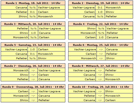 TopTurniere Biel 2011 - Carlsen strauchelt gegen Vachier-Lagrave, Morozevich siegt gegen Caruana Alles wieder offen?