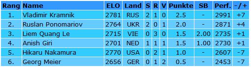TopTurniere Dortmund 2011 - Ponomariov zerlegt Nakamura... ...Kramnik bleibt vorn und Meier verliert erneut