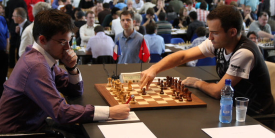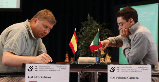 27.07.2011 - Vielleicht durfte man für das Spitzenduell der achten Runde des ACCENTUS-Grandmaster Tournament in Biel nicht zu viel erwarten, dennoch hatten viele Fans und Kiebitze sicherlich gehofft, dass die Partie zwischen Leader Magnus Carlsen und Verfolger Alexander Morozevich spannender werden würde. Doch schon nach fünfundzwanzig Zügen hatten beide bei gleicher Bauernzahl nur noch einen Turm übrig und schaukelten sich alsbald ins Remis. Somit führt weiterhin Carlsen vor Morozevich. Den dritten Rang teilen sich Maxime Vachier-Lagrave und Alexei Shirov. Der Franzose siegte per Turmopfer und im zweiten Nachfassen gegen Yannick Pelletier, während der Spanier nach langem Ringen im Endspiel Fabiano Caruana austrickste.