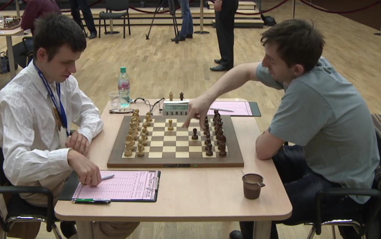 10.09.2011 - Peter Svidler und Ruslan Ponomariov dürfen sich nach dem zweiten Tag des Viertelfinales beim FIDE World Cup 2011 in Khanty-Mansiysk gleich doppelt freuen. Ersterer konnte Judit Polgar besiegen und Zweiterer tat es ihm gegen Vugar Gashimov mit virtuoser Endspielkunst gleich. Somit stehen beide im Halbfinale und wissen bereits, gegen wen sie spielen - nämlich gegeneinander! In den morgigen Tiebreak müssen dagegen die Duelle Vassily Ivanchuk gegen Teimour Radjabov und Alexander Grischuk gegen David Navara über das zweite Halbfinale entscheiden. Ivanchuk hatte gestern die Führung übernommen, doch Radjabov konnte heute zurückschlagen. Derweil trennten sich Grischuk und Navara beide Male unentschieden, wobei der Tscheche heute mit Mehrbauer eine gute Chance auf den direkten Einzug ins Halbfinale verstreichen ließ.