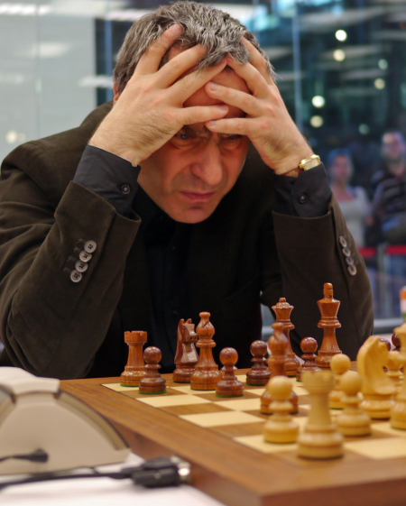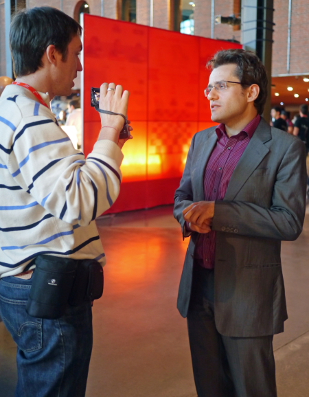10.10.2011 - Spannender könnte die Lage vor der morgigen Schlussrunde beim Chess Master Final 2011 nicht mehr sein. Im heutigen Spitzenduell musste Vassily Ivanchuk endgültig seine einst komfortable Führung aufgeben. Der Ukrainer unterlag in einer Taktikschlacht den Rechenkünsten von Magnus Carlsen, so dass dieser nun ebenfalls 14 Punkte auf dem Konto hat. So gut wie ausgeschieden aus dem Rennen um den Turniersieg ist dagegen Hikaru Nakamura. Der Amerikaner verlor im Bemühen, aus seinem Königsinder gegen Francisco Vallejo etwas Zählbares herauszuholen die Uhr aus dem Blick und verlor im 40. Zug(!) auf Zeit. Ein mieser Tag für ihn, wie auch Weltmeister Viswanathan Anand, welcher gegen Levon Aronian aus der Eröffnung erstaunlich schnell unter Druck geriet und nach einem schlimmen Überseher bald das Handtuch werfen musste. Nakamura müsste morgen mit Weiß Carlsen schlagen und Aronian mit Schwarz Ivanchuk, dann wären gleich vier Spieler punktgleich an der Spitze!
