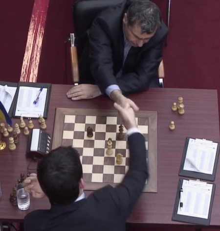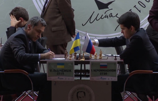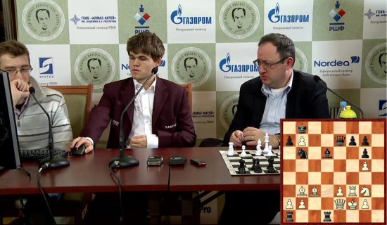 17.11.2011 - In der heutigen zweiten Runde des Tal Memorials konnte Magnus Carlsen die geteilte Tabellenführung erobern. In einer packenden Partie wehrte er zunächst den Königsangriff von Boris Gelfand ab und konterte diesen dann in Zeitnot zum einzigen Sieg der Runde aus. Alle anderen Begegnungen endeten mehr oder weniger spannend im Remishafen, wobei Ian Nepomniachtchi im Spitzenduell gegen Vassily Ivanchuk am längsten um den halben Punkt bangen musste. Somit führen nun Carlsen, Ivanchuk und Nepomniachtchi mit 1,5 aus 2. Morgen um 12:00 Uhr steht die dritte Runde an. Auch dieses Turnier wird übrigens auf der Webseite des Russischen Schachverbands mit einem HD-Videostream live übertragen.