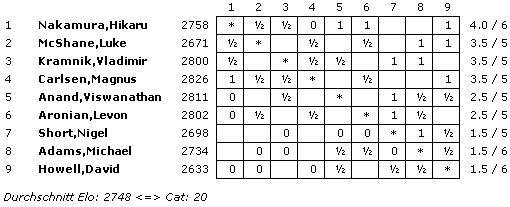TopTurniere Halber Ruhetag in London Alle Partien remis in Runde 6 Nakamura bleibt auch an Geburtstag vorne