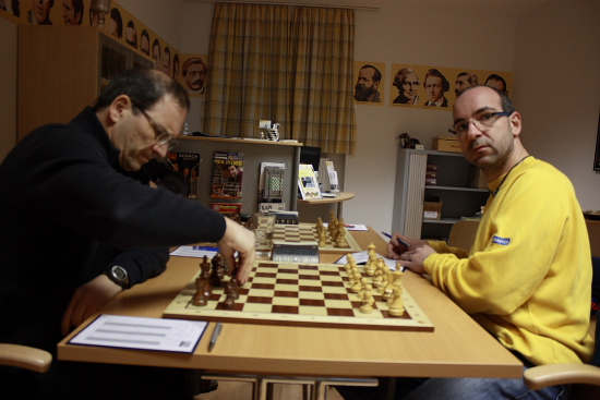 11.12.2011 - Am Montag steht die sechste von sieben Runden bei der 2. Frankfurter Chess960 Stadtmeisterschaft an. Nicht nur um den ersten Rang, auch um die folgenden Plätze und Ratingpreise wird nun heftiger denn je gerungen. Okay, in Sachen Turniersieg scheint die Messe so gut wie gelesen, aber noch ist IM Erik Zude mit seinen 5/5 mathematisch nicht auf der sicheren Seite. Verfolger FM Behrang Sadeghi liegt zwar einen vollen Zähler zurück, aber im direkten Aufeinandertreffen könnte er in Runde 6 mit einem Sieg den entscheidenden Big Point schaffen und gleichziehen. Es folgen die Ergebnisse der vierten und fünften Runde und die Paarungen der sechsten Runde nebst Tabelle, Partien und zahlreichen Bildern.