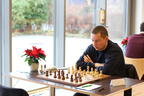 12.12.2011 - Weil man in der zweiten Runde gegen Mülheim verlor, musste sich Meister OSG Baden-Baden die Tabellenspitze der Schachbundesliga zunächst mal von unten ansehen. Doch nach dem zurückliegenden Wochenende sind die Mannen von Kapitän Sven Noppes wieder voll auf Meisterkurs. Zwei deutliche Siege gegen den einstigen Tabellenführer SV Wattenscheid und Abstiegskandidat Hansa Dortmund und zeitgleich das 4:4 zwischen Werder Bremen und SC Eppingen bedeuten erstmals die alleinige Führung. Diese wird auch mindestens bis Anfang Februar 2012 Bestand haben, denn erst dann wird das nächste Bundesliga-Wochenende stattfinden. Auf dem zweiten Rang werden die Werderaner überwintern und Solingen auf Rang 3 vor den punktgleichen Eppingern.
