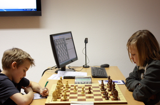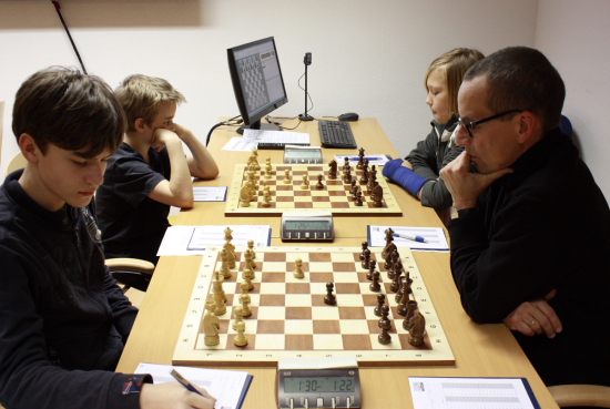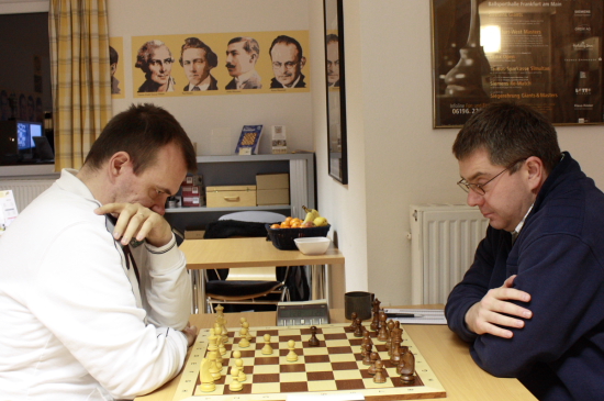15.12.2011 - Eine Runde steht bei der 2. Frankfurter Chess960 Stadtmeisterschaft zwar noch aus, aber der Sieger steht bereits fest. Zu stark präsentierte sich IM Erik Zude und gewann bisher alle seine Partien und führt nun uneinholbar mit 1,5 Punkten Vorsprung. Zum Abschluss wird er noch auf Ferdinand Niebling treffen, welcher ebenfalls vorzeitig seinen Senioren-Titel aus dem Vorjahr verteidigt hat. Zwar könnte Simon Kletzerman noch nach Punkten gleichziehen, aber nach Zweitwertung wird er den Ehren-Tiger nicht mehr einholen können, obwohl er im direkten Duell in Runde 1 gegen Niebling gewann. Der Kampf um die bezahlten Plätze und den Sieg in den Ratingklassen ist noch völlig offen und verspricht eine spannende Schlussrunde am kommenden Montag. Es folgen die Ergebnisse der sechsten Runde sowie die Paarungen der letzten Runde nebst Tabelle, Partien und Bildern.