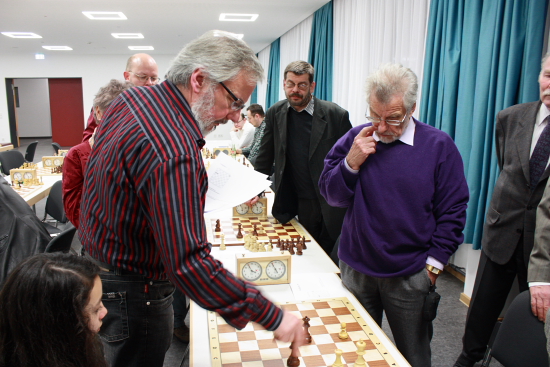 Der nächste Teil der Veranstaltung war, wie es sich für einen dem Denksport frönenden Verein gehört, geistigen Aktivitäten gewidmet. Walter Gräbner hatte einen Problemlösungswettbewerb mit vier Aufgaben und ein Quiz mit 10 Fragen aus Randbereichen des Schachs (Schach und Literatur/Kultur/Politik) vorbereitet. Bei den Schachaufgaben war Michael Dehl Bester, das Quiz gewann das Gästeteam vom SC Frankfurt-West (Claus Henrici und Markus Busche).