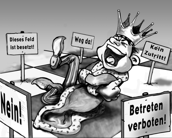 MR: Ihre Karikaturen beschränken sich nicht nur allein aufs Schach. So haben Sie beispielsweise 2009 zum 60-jährigen Jubiläum des deutschen Bundestags unter dem Titel „HERRSCHAFTEN - Was Sie schon immer über den Bundestag wissen wollten“ zusammen mit Timo Kühn und Matthias Dietzel ein Buch herausgebracht, zu welchem Sie zahlreiche Zeichnungen beisteuerten.