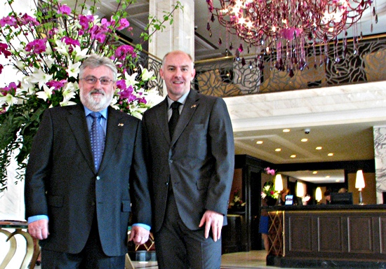 Eric van Reem und Hans-Walter Schmitt starten im Hotel Baltschug mit Kameras, aber in Anzügen!