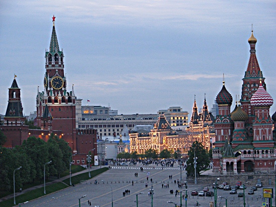 Blick auf den Kreml mit Friedenstaube im Vordergrund!