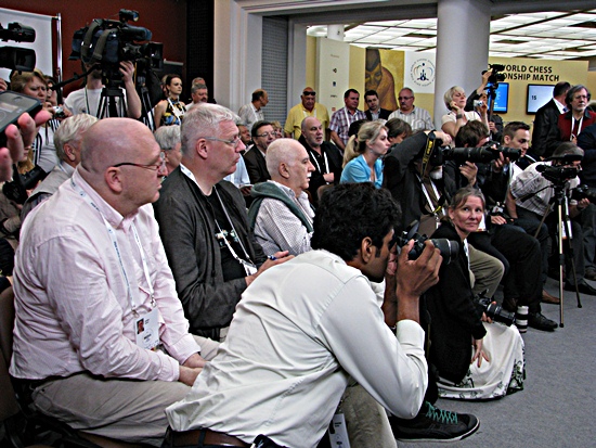 Die Journalisten mit bohrenden Fragen: Warum werden die Partien nicht weiter gespielt?