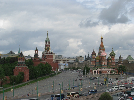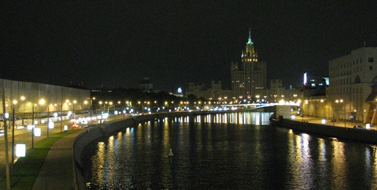 Der Blick nach rechts: Moscwa mit Stalin-Tempel Koteincheskaya (Zuckerbäcker-Stil).