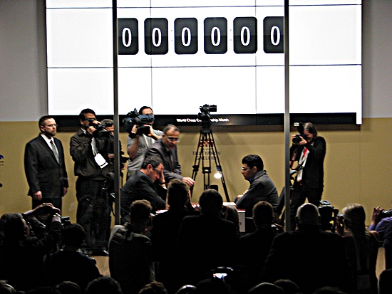 ... und schon zieht Weltmeister Anand den d-Bauern, Gründfeldindisch, f3-System. Geduldig hatten beide Spieler die Konzentrationsphase von 3:08min beginnend am Brett gesessen.