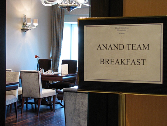 Frühstücksraum im Baltschug Kempinski für das Anand-Team reserviert