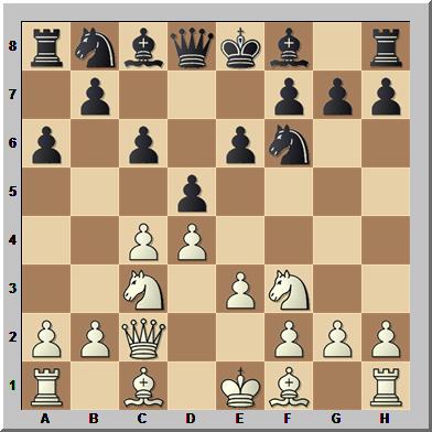 14.Lf3 0–0N Schwarz bietet mit seinem ersten neuen Zug ein (natürlich vorbereitetes) Bauernopfer an.