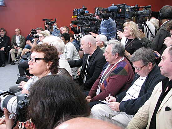 Leichtes Fibrieren war im ganzen Presseraum zu spüren, als der Meister am Tisch neben Mark Gluhosky und Dolmetcher Andrey Yakovlev Platz nahm und gleich losnagelte. Kurze Fragen beantwortete er ausführlich. Unangenehme, aus der Ecke der indischen Journalisten, polemisch und ziemlich undiplomatisch, man sei hier schließlich in der Hauptstadt des Schachs und nicht irgendwo in der Welt.