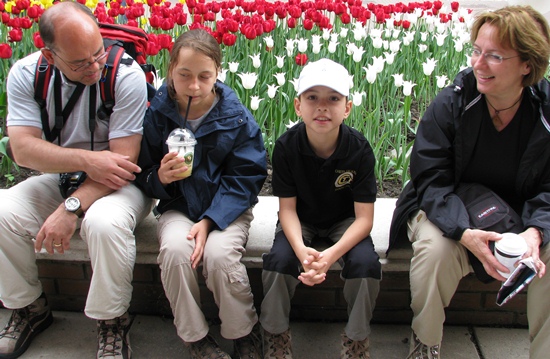 Jetzt aber noch mal richtig, konzentriert mit beiden Augen zum Fotografen gucken und lächeln ... geht doch! Die Werndl-Familie: Papa Thomas, Schwester Charlotte Leonie, Jan Frederik und Mama Petra