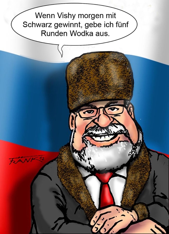 TopTurniere Fünf Runden Wodka... Karikatur vor der siebten WM-Partie von Fränk Stiefel