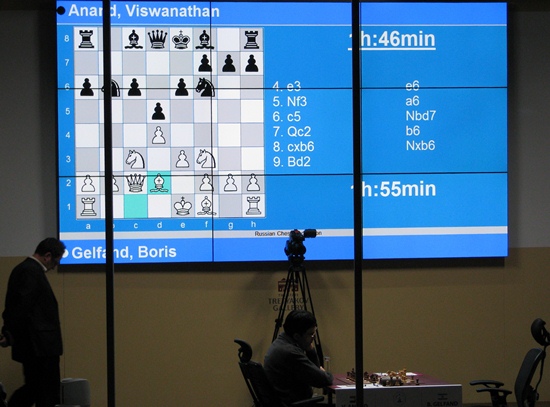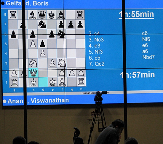 Zuerst zeigte die Live-Übertragung im Spielsaal, dass Viswanathan Anand Weiß hat