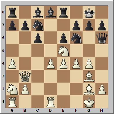 17.f3! Die Vorbereitung zum Sturm auf die schwarze Königsstellung. 17...Dh5 18.e4 Sc7 19.g4 Dh6 20.Lg3! Mit jedem Zug schafft Weiß neue Drohungen. 20...Ld8 21.f4+–