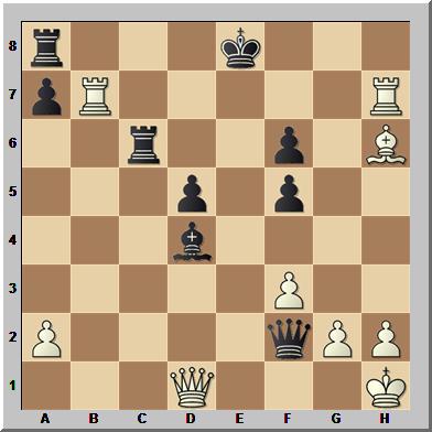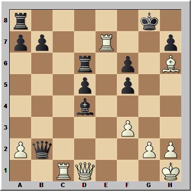 23...Tc6 24.Tb1 Df2 25.Tg7+ Kf8 26.Txh7+ Ke8 27.Tbxb7+– Hier überschritt Schwarz die Zeit und kam so der fälligen Aufgabe zuvor.