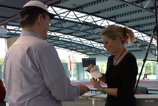 Aaah, es geht um den "QR-Code" auf der Mütze des Turnierleiters, mit welchem man sofort auf dessen Webseite gelangen kann!