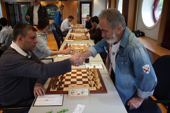 Shakehands zwischen GM Igor Khenkin und FM Ryhor Isserman