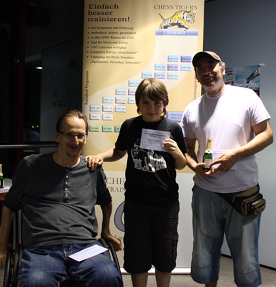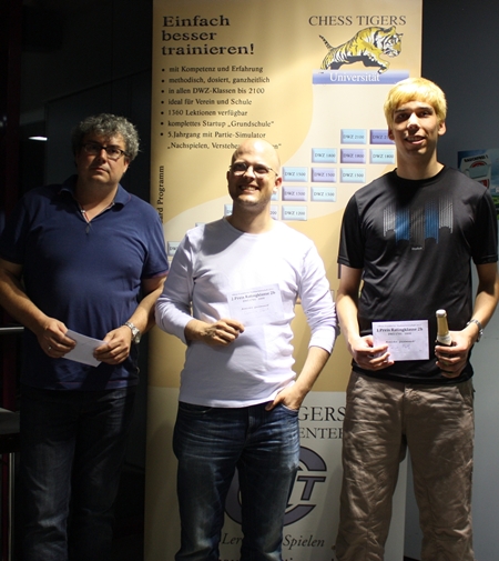Um den Stadtmeistertitel erfolgreich verteidigen zu können, musste GM Igor Khenkin siegen, doch mit IM Stefan Reschke stellte sich nun wahrlich kein Leichtgewicht in den Weg. Es entbrannte ein spannendes Königsindisch-Duell, in welchem der Großmeister letztlich eine Qualität für Initiative opferte und diese tatsächlich in einen vollen Punkt konvertierte. Da nutzte es IM Sven Telljohann auch nichts, dass er an Brett 2 FM Michael Stockmann besiegte, für ihn blieb nur der glorreiche zweite Rang hinter dem Titelverteidiger. IM Erik Zude tat an Brett 3 sein Bestes, FM Ryhor Isserman über die Klinge springen zu lassen, doch schließlich musste er mit einen halben Punkt Vorlieb nehmen. Kroatien-Urlauber FM Oliver Uwira kam braun gebrannt und im Ballack-Trikot an Brett 4 gegen Ludger Brüggemann trotz Mehrbauer ebenfalls nicht über ein Remis hinaus, aber immerhin reichte es in der Endabrechnung noch für den dritten Rang.