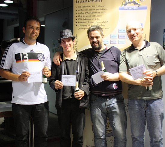 Die Team-Kapitäne der besten vier Teams - es gewann übrigens der SC König Nied mit Oliver Uwira (5,5), Daniel Prenzler (5,0), Mike Rosa /4,5) und Walter Gräbner (4,0)