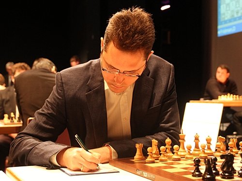 16.07.2012 - Die heutige vierte Runde des 40. Sparkassen Chess-Meeting in Dortmund endete etwas unbefriedigend mit fünf Unentschieden. Dabei wurde durchaus anständig um die Punkte gerungen, aber außer Peter Leko gegen Fabiano Caruana konnte sich niemand einen entscheidenden Vorteil erspielen. Zu seinem Leidwesen verpasste der Ungar jedoch bei knapper Bedenkzeit eine gute Möglichkeit und musste nach 42 Zügen ins Remis einwilligen. Wer die Spieler übrigens gerne mal treffen und eine Signatur haben möchte, kommt am Mittwoch um 15:00 Uhr in das Kundenzentrum der Sparkasse Dortmund (Freistuhl 2)!