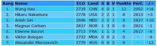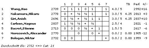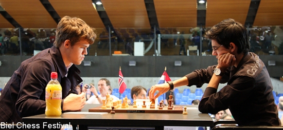 TopTurniere Biel 2012 - Immer wieder Wang! Nakamura zerlegt Bacrot, Carlsen - Giri remis
