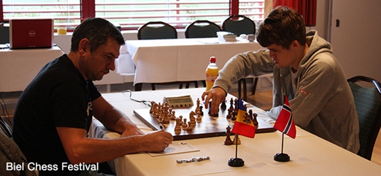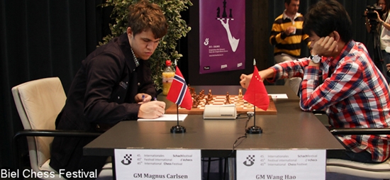 TopTurniere Biel 2012 - Carlsen schlägt erst Bologan und dann Wang Hochspannung für die letzten drei Runden