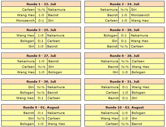 Leider musste Morozevich nach zwei Runden aus gesundheitlichen Gründen das Turnier verlassen. Seinen Platz nahm Viktor Bologan ein.