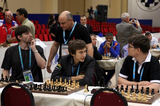 28.08.2012 - Mit einem ungefährdeten 3,5:0,5 gegen Neuseeland hat die deutsche Nationalmannschaft in Istanbul einen guten Start hingelegt. Während Arkadij Naiditsch, Daniel Fridman und Jan Gustafsson ihre Gegner sicher im Griff hatten, ließ Igor Khenkin seinen Gegenüber FM Nicolas Croad aus gewinnträchtiger Stellung ins Remis entwischen. Bei den Frauen war der Ausgang des Matches gegen die sehbehinderten Spieler der IBCA (International Braille Chess Association) lange unklar, womit wir auch gleich schon beim größten Problem der ersten Olympia-Runde sind. Zahlreiche Bretter konnten offenbar nicht (korrekt) übertragen werden, so auch die Partie von Marta Michna. So mussten die Fans lange damit leben, dass es 2:1 für Deutschland stand, nachdem Elena Levushkina und Melanie Ohme sicher gewonnen und Elisabeth Pähtz leider verloren hatte. Letztlich meldete die offizielle Turnierseite zur allgemeinen Erleichterung, dass Michna und damit auch das deutsche Frauenteam gewonnen hatte. Neben den nicht übertragenen Partien ist es ferner sehr ärgerlich, dass die offizielle Live-Seite eine Menge unglaublicher Ergebnisse meldete, die zumindest in der Summe schlicht nicht stimmen können bzw. mittlerweile schon korrigiert wurden. Einige überraschende und belegte Einzelergebnisse gibt es dennoch zu vermelden. So verlor Emil Sutovsky gegen IM Andrei Obodchuk vom Team IPCA (International Physically Disabled Chess Association) ebenso wie Loek van Wely gegen IM Tze-Meng Mok aus Malaysia.