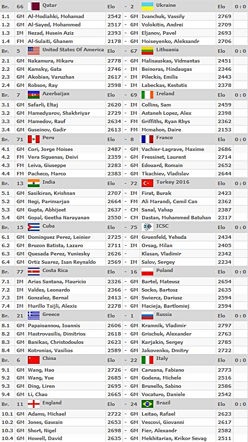 Die 40. Schacholympiade 2012 findet bis zum 09. September in Istanbul statt. In beiden Wettbewerben werden 11 Runden nach Schweizer System gespielt in denen die Mannschaften jeweils mit 4 Spielern antreten. Jedes Team darf zudem einen Ersatzmann bzw. eine Ersatzfrau melden.
