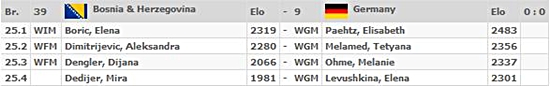 Bei Punktgleichheit entscheidet die Sonneborn-Berger-Wertung, wobei das niedrigste Ergebnis gestrichen wird. Sollte es nötig sein, entscheidet danach die Summe der Brettpunkte.