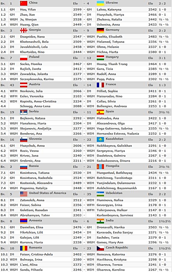 30.08.2012 - Das deutsche Team war gegen die Iraner favorisiert, doch mit dem glatten 4:0 übertrafen die amtierenden Mannschaft-Europameister ohne Spitzenbrett Arkadij Naiditsch sogar die Erwartungen. Igor Khenkin, Georg Meier, Daniel Fridman und Jan Gustafsson ließen ihren Gegnern nicht den Hauch einer Chance und liegen mit 6:0 Punkten weiterhin ausgezeichnet im Rennen. Hätte man der deutschen Auswahl der Frauen dagegen vorab ein 2:2 gegen Georgien angeboten, sie hätten es bestimmt gerne angenommen. Tatsächlich erreichten sie heute dieses Ergebnis, doch die Wahrheit ist, dass sie ganz klar einen Sieg auf den vier Brettern hatten. Marta Michna legte mit einem vollen Punkt vor, Tetyana Melamed steuerte ein sicheres Remis bei, und die beiden restlichen Stellungen versprachen noch zwei weitere Punkte. Während Elisabeth Pähtz am Spitzenbrett eine versteckte Mattkombination ausließ, verlor Melanie Ohme (Bild) zusehends die Kontrolle über ihre schöne Stellung. Letztlich musste sie aufgeben und Pähtz kam in ihrem 150. Einsatz für die Nationalmannschaft doch "nur" zu einem Remis. Dennoch, das ist trotz der ausgelassenen Chancen ein sehr gutes Ergebnis, und unsere Damen sollten sich daher am besten nur ganz, ganz kurz grämen. Bisher kann man jedenfalls festhalten, dass die Kapitäne und Eröffnungstrainer - Uwe Bönsch & Peter Heine-Nielsen bei den Männern und Raj Tischbierek & Michael Prusikin bei den Frauen - ihre Teams ausgezeichnet eingestellt haben!