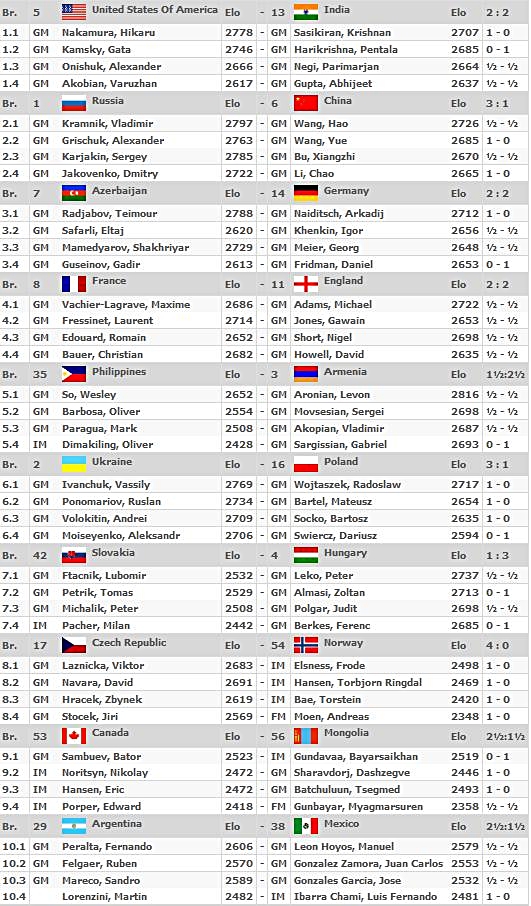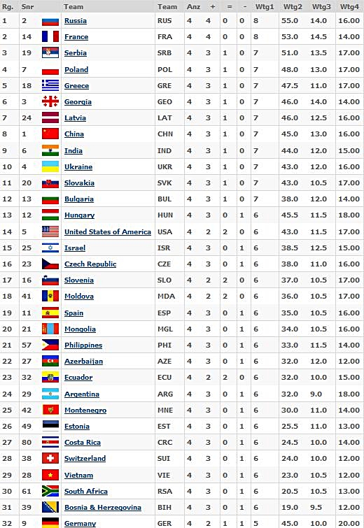 31.08.2012 - 2011 bei der Mannschafts-EM war Arkadij Naiditsch mit seinem Sieg der Matchwinner gegen Aserbaidschan, während seine Kollegen allesamt remisierten. Heute wäre es in der vierten Runde der 40. Schacholympiade beinahe genau umgekehrt gekommen. Doch Daniel Fridman spielte ganz groß auf. Er hatte zwar die ganze Partie über stets gut gestanden, doch der Gegner rettete sich in ein remislich wirkendes Endspiel mit Minusbauer aber eben den berüchtigten ungleichfarbigen Läufern. Doch der deutsche Meister erspähte noch eine letzte Gewinnidee, und sein Gegner konnte bei knapper Bedenkzeit keine Verteidigung finden und musste zur großen Freude der zahlreichen deutschen Kiebitze letztlich das Handtuch werfen. Georg Meier und Igor Khenkin steuerten die beiden Remisen zum verdienten 2:2 bei. In den Spitzenbegegnungen schlug Russland die Chinesen 3:1, USA gegen Indien endete 2:2 ebenso wie Frankreich - England. Armenien besiegte die Philippinen mit 2,5:1,5 und die Ukraine Polen mit 3:1. Weniger Glück hatten indes die deutschen Frauen, sie unterlagen China mit 1:3. Zwar bremste Elisabeth Pähtz am Spitzenbrett Weltmeisterin Hou Yifan per Dauerschach aus, doch ihre Kolleginnen konnten leider nicht alle mitziehen. Marta Michna gelang ein weiteres Remis, doch Tetyana Melamed und Elena Levushnika verloren. UPDATE: Losglück oder nicht, die deutschen Mannen treffen in der 5. Runde auf das nominell schwächere Team aus Montenegro. Auch die Frauen dürften sich gegen die schlagbaren Kubanerinnen zwei Mannschaftspunkte ausrechnen.