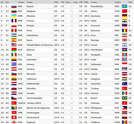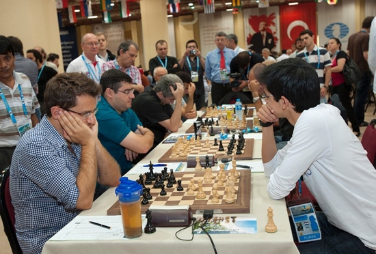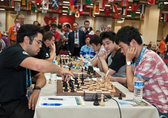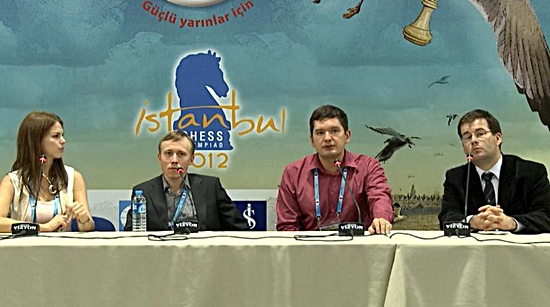 07.09.2012 - Mit jeweils 2,5:1,5 besiegten China und Russland in der zehnten Runde der 40. Schacholympiade die Teams aus Mittel- bzw. Südamerika. Bei den Chinesen sorgte Ding Liren gegen den US-Amerikaner Alexander Onischuk für den entscheidenden Punkt, bei den glücklichen Russen war es Sergey Karjakin, der den einzigen Sieg gegen den Argentinier Diego Flores verbuchen konnte. Ebenfalls an der Spitze liegen weiterhin die Armenier mit einem klaren 3:1 gegen die Niederlande. Levon Aronian schlug Anish Giri, und Vladimir Akopian tat es ihm gegen Ivan Sokolov gleich. Einen waschechten Kampfsieg schaffte die deutsche Auswahl gegen die Weißrussen. Nachdem Arkadij Naiditsch, Georg Meier und Daniel Fridman remisiert hatten, gewann Jan Gustafsson ein kompliziertes Springerendspiel. Damit ist der erhoffte Platz in den Top 10 ganz nah, aber möglicherweise noch nicht in trockenen Tüchern. Die deutschen Frauen gingen gegen die Spanierinnen beherzt zu Werke und siegten verdient mit 3:1. Elisabeth Pähtz und Marta Michna siegten, während Tatiana Melamed und Melanie Ohme jeweils einen Halben beisteuerten. In der Gesamtwertung ist damit auch für die Mädels eine Top 10-Platzierung möglich. Im Kampf um Gold wird es nochmals richtig spannend, denn die Chinesinnen kamen gegen Kasachstan nur zu einem 2:2 und mussten zusehen, wie die Russinnen mit einem klaren 3,5:0,5 gegen Armenien wieder gleichziehen konnten. Am Samstag ist der letzte Ruhetag in Istanbul, bevor am Sonntag um 10:00 Uhr unserer Zeit die finale Runde beginnt. Alle Ergebnisse, Tabellen und Paarungen der elften Runde folgen voraussichtlich gegen 21:15 Uhr. UPDATE: Tja, wer gut spielt, bekommt auch gute Gegner, und so müssen die deutschen Mannen in der Schlussrunde der Olympiade auch noch gegen die Nr. 1 der Setzliste Russland an die Bretter. Keineswegs einfacher wird es für die Frauen gegen die Ukraine werden. Die Hoffnung stirbt bekanntlich zuletzt, und so drücken wir so fest wie möglich die Daumen!