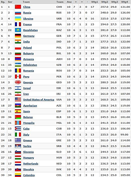 TopTurniere Olympia 2012 - China, Russland & Armenien führen Beide deutsche Teams siegen! Ruhetag am Samstag, letzte Runde am Sonntag bereits um 10:00 Uhr! UPDATE: Hammerlose für die Deutschen: Männer gegen Russland, Frauen gegen Ukraine