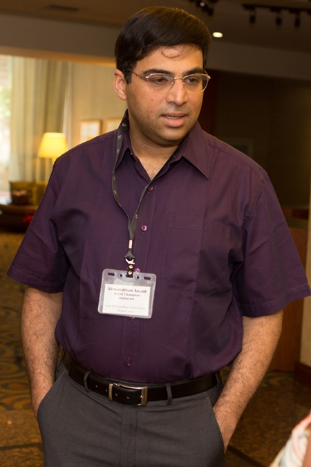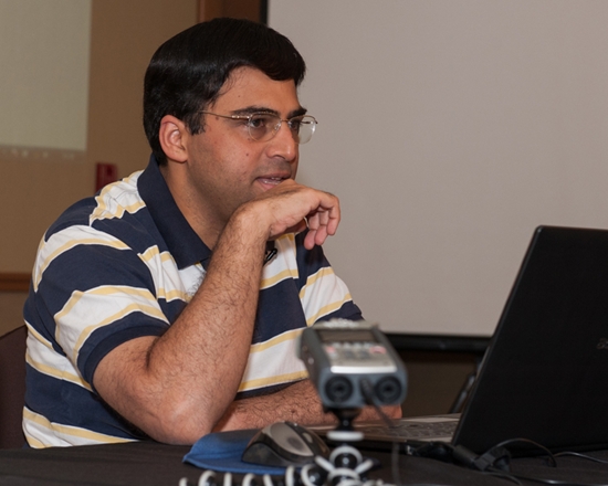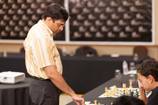 11.09.2012 - Was kann für einen (jungen) Schachspieler besser sein, als vom amtierenden Champion persönlich in die Geheimnisse des Schachtrainings eingeweiht zu werden? Diese Frage jedenfalls stellten sich auch die Verantwortlichen der Metropolitan Chess Inc. - einer Organisation zu Förderung des Schachs im Umkreis von Los Angeles. Die Antwort war klar: Es gibt nichts, was besser ist, und daher bat man Weltmeister Viswanathan Anand und einige weitere Meister, vom 8. bis 13. August in die Stadt der Engel, um gleich rund 100 Jugendliche zu trainieren. Selbige hingen in diesen Tagen an den Lippen des Inders und saugten dessen Wissen förmlich in sich auf. Am letzten Tag gab Anand noch ein extrem stark besetztes Simultan, in welchem ein Brett für die Community des Schachservers "Vote Chess" reserviert war.