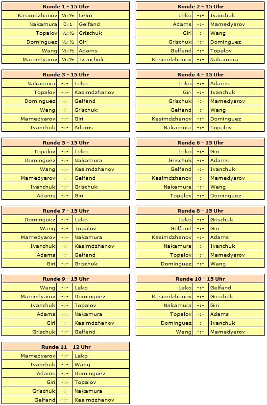Gespielt wird ein elfrundiges Rundenturnier mit zwölf Spielern. Rundenstart ist täglich um 15:00 Uhr unserer Zeit, lediglich die letzte Runde beginnt bereits um 12:00 Uhr. Am 26. und 30. September wird jeweils ein Ruhetag eingelegt.