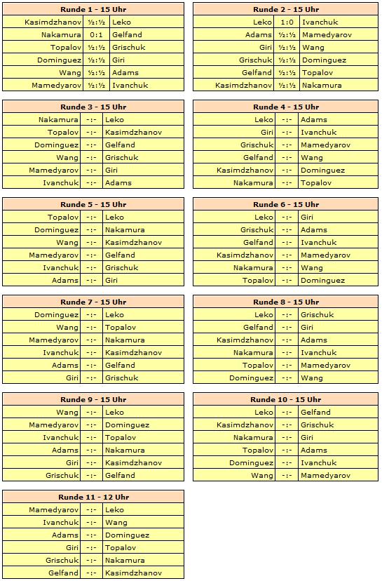 Gespielt wird ein elfrundiges Rundenturnier mit zwölf Spielern. Rundenstart ist täglich um 15:00 Uhr unserer Zeit, lediglich die letzte Runde beginnt bereits um 12:00 Uhr. Am 26. und 30. September wird jeweils ein Ruhetag eingelegt.
