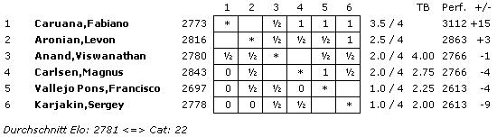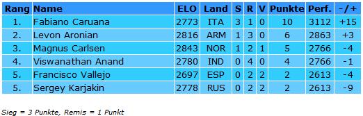 TopTurniere Grand Slam - Was erlauben Caruana? Dem Italiener gelingt der dritte Sieg in der vierten Partie Carlsen im Glück gegen Aronian