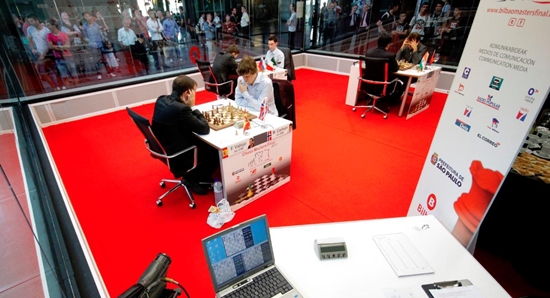 09.10.2012 - Mit seinem erneuten Sieg ist Magnus Carlsen beim Grand Slam Masters Final in Bilbao mit Fabiano Caruana gleichgezogen. Der Norweger besiegte Francisco Vallejo Pons, während Caruana gegen Sergey Karjakin remisierte. Selbiges taten auch Levon Aronian und Viswanathan Anand. Der Weltmeister hat damit bisher zwar noch keine Partie verloren, aber leider auch keine gewonnen. Am Mittwoch ist der letzte Ruhetag, bevor es ab Donnerstag in den Endspurt geht. Leider war auch diese Angabe (wie z. B. auch einige Paarungen) zunächst falsch auf der offiziellen Turnierseite nachzulesen.