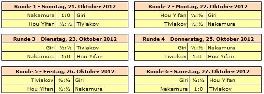 Mit einem ELO-Schnitt von 2695 wird die Turnierkategorie 18 erreicht. Rundenstart ist täglich um 14:00 Uhr. Zur Halbzeit wird es am 24. Oktober einen Ruhetag geben.