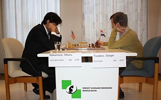 27.10.2012 - Wer darauf gesetzt hatte, dass Hikaru Nakamura in der Schlussrunde der Kroongroep beim Univé Schaaktoernooi 2012 in Hoogeveen den Turniersieg mit einem Remis gegen Sergei Tiviakov absichern würde, sieht sich nun eines Besseren belehrt. Der Amerikaner spielte mit Weiß auf Sieg und erreichte diesen auch. Damit hat er letztlich mit 1,5 Punkten Vorsprung und einer Perfomance von 2855 das Turnier ganz klar für sich entschieden. Zweiter ist mit 3 Punkten Tiviakov, denn Anish Giri und Hou Yifan begnügten sich zum Abschluss mit einem Remis und beendeten beide das Turnier, ohne eine Partie gewonnen zu haben. Mit einem wahren Kraftakt hat Erwin L'Ami das Univé Open gewonnen. In der Schlussrunde rang er den bis dahin führenden Friso Nijboer nieder und kam somit wie sein Landsmann auf 7 Punkte. Dank des direkten Vergleichs darf sich L'Ami über die 3.000 Euro Siegprämie freuen.