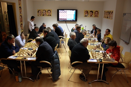 Nun, diesmal setzte es leider die zwei berechenbaren Niederlagen: immerhin gelangen an den vorderen Brettern zwei Remis, achtern sogar drei. Dabei konnte man an Brett 8 im Kampf der beiden Fidemeister Arnd Janoska (ehemals Steinbach) und Stefan Buchal (lange Jahre ehemals SV Hofheim) ein hessisches Generationenduell beobachten.