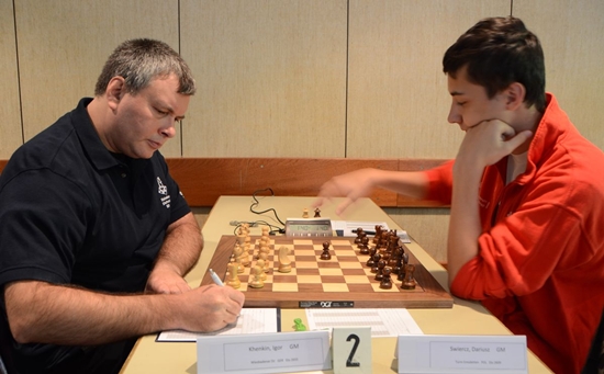 GM Igor Khenkin (Wiesbaden) gegen GM Dariusz Swiercz (Emsdetten)