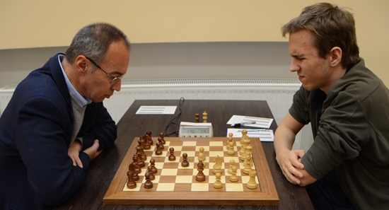 Auch GM Jan Smeets (Solingen) musste sich mit einem halben Zähler gegen IM Marcin Tazbir (Wiesbaden) begnügen